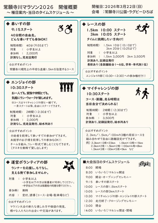【計測・記録】 計測あり(ICタグ計測)、 記録証発行(学年・年代別順位、上位者表彰、グロスタイム)