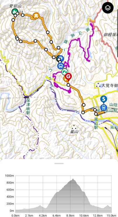 JR嵯峨嵐山駅⇒愛宕念仏寺⇒愛宕山(924m)⇒月輪寺⇒愛宕念仏寺⇒愛宕BASE