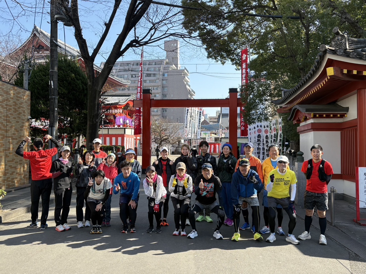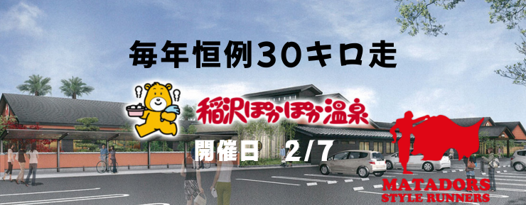 10分ほどのウォーミングアップを行い、ぽかぽか温泉から大須観音を目指して走ります。15km先の大須観音にて15分ほど休憩します。大須観音を折り返し地点にしてぽかぽか温泉に戻っていきます。