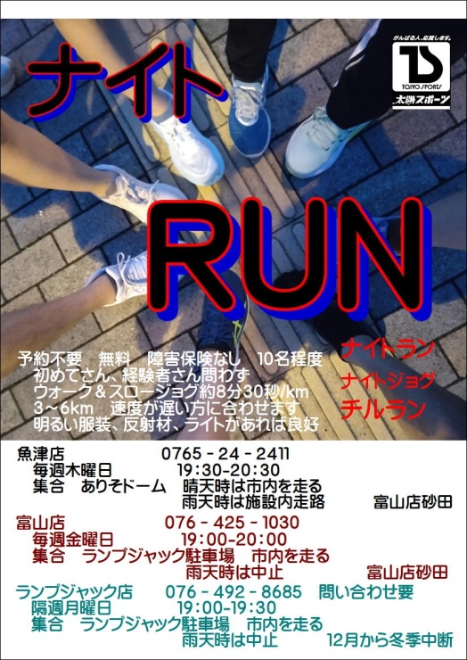 夜の街中をワイワイしゃべりながらウォーク&ジョグ