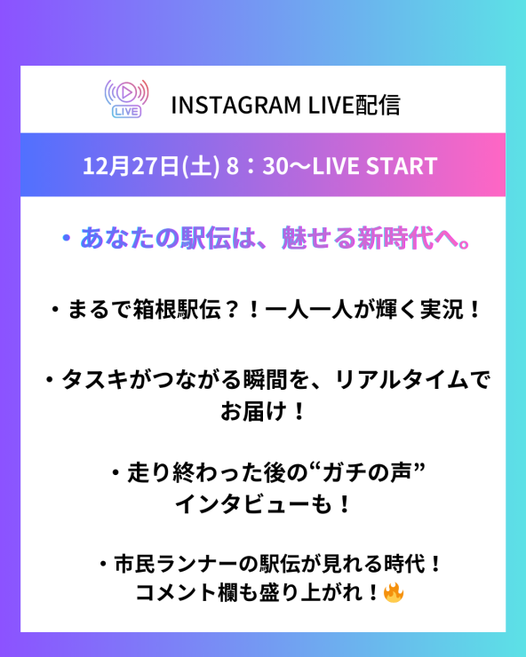 レース中継&実況インスタライブもあり!