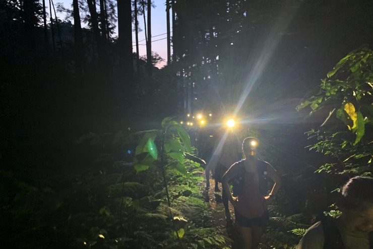 ヘッドライトを灯し、いざ夜の森へ。昼間とは全く違う、静寂と神秘に包まれた世界を探検します。