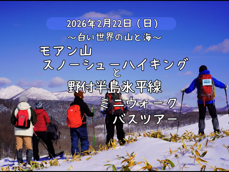 モアン山スノーシューハイキングと野付半島氷平線ミニウォークバスツアー 受付中