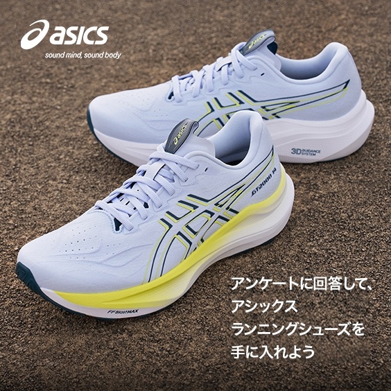 アンケートに回答してアシックスランニングシューズを手に入れよう。