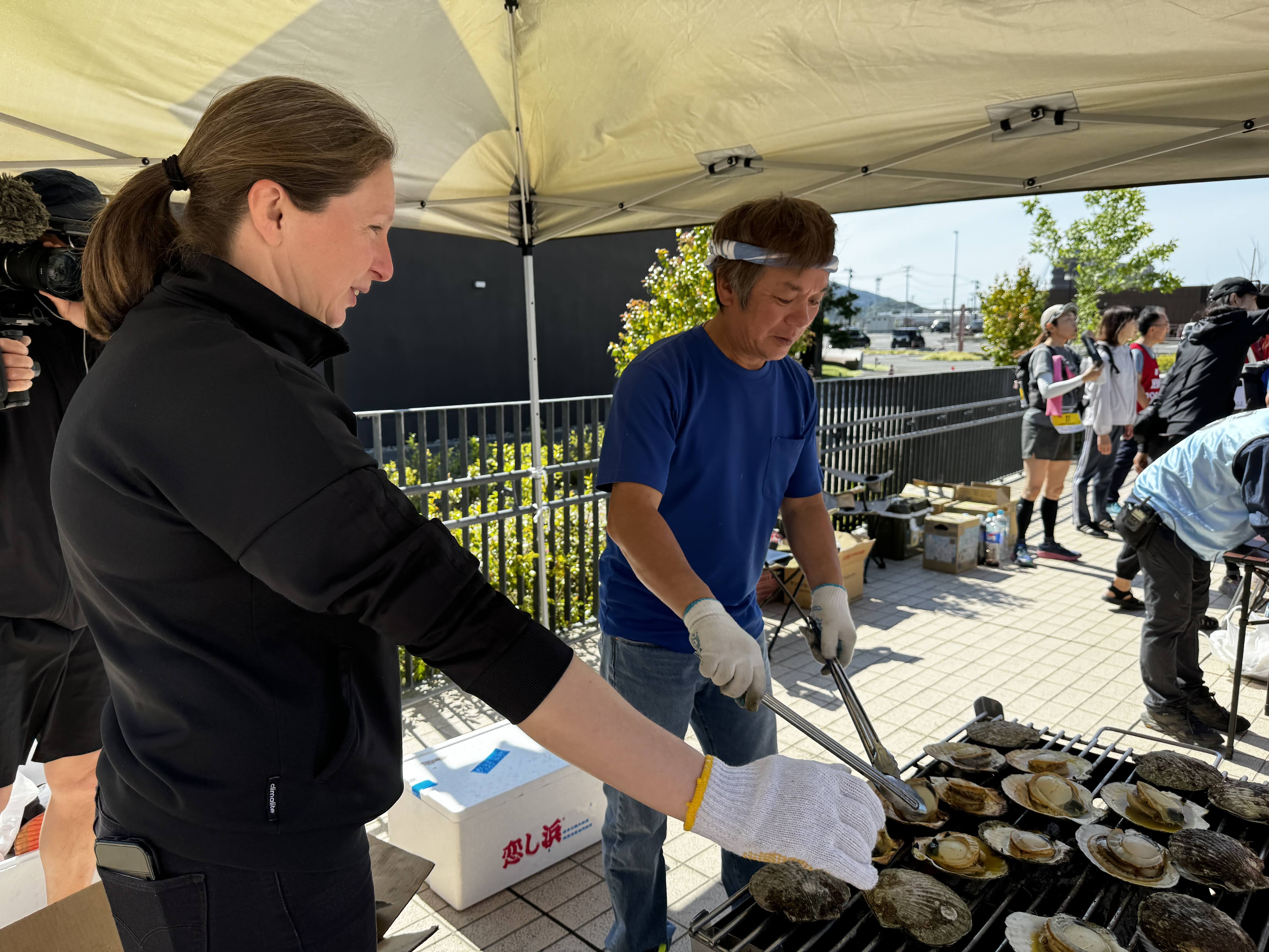 ●三陸ならではのグルメを食べながらレースを楽しみましょう。競技中のエイドステーションでも、三陸ならではの食事を提供します。地域の方とふれあいながら走れることも本大会の魅力です。