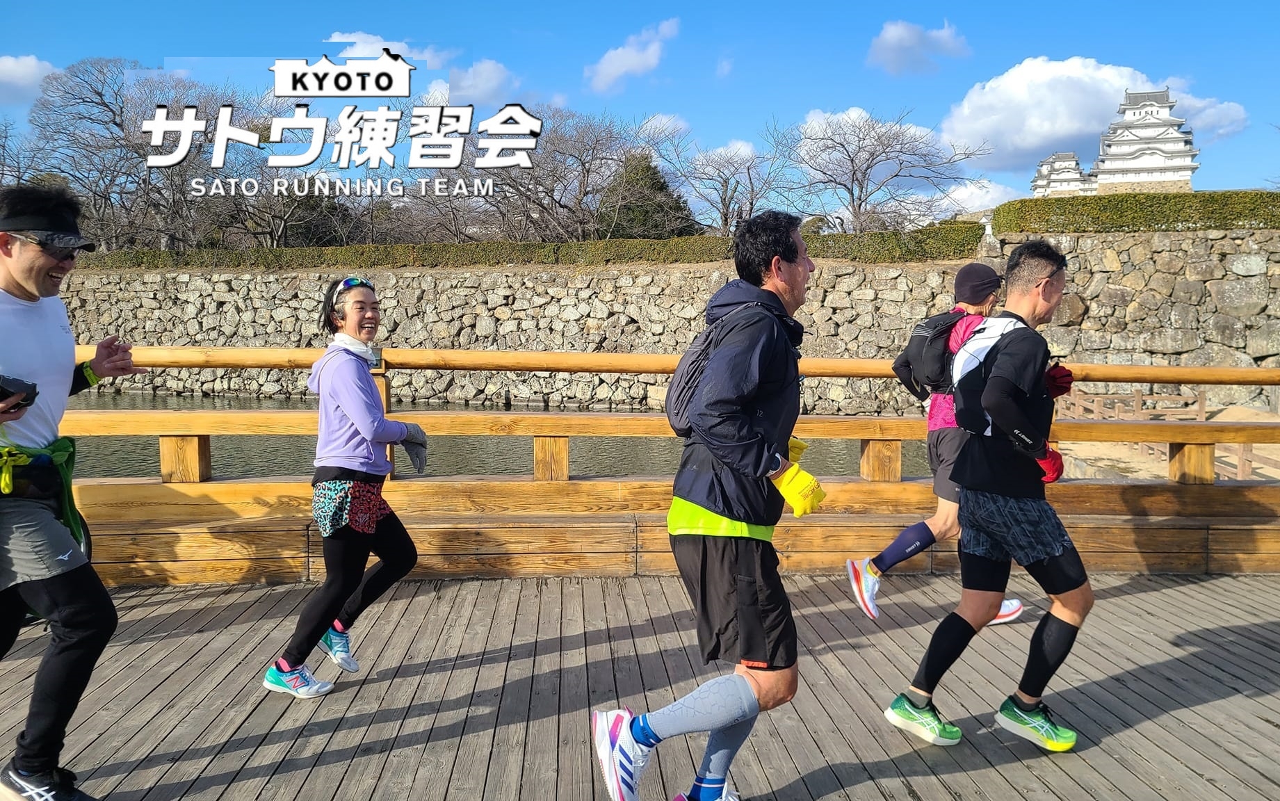 限界を超えるサトウ練習会。姫路城マラソンのコースを全て走る試走会です。コースのポイントを確認しながら、参加者一人一人のフォームや大会当日の走り方もアドバイスします。姫路城出場者はもちろん、他の大会に出場予定のかたもぜひご参加ください。本番に備えた最高のシミュレーションになるのはもちろん、持久力や脚の耐筋性の強化にも効果的な練習になります。大会本番に向けて大きな自信がつくことは間違いありません。