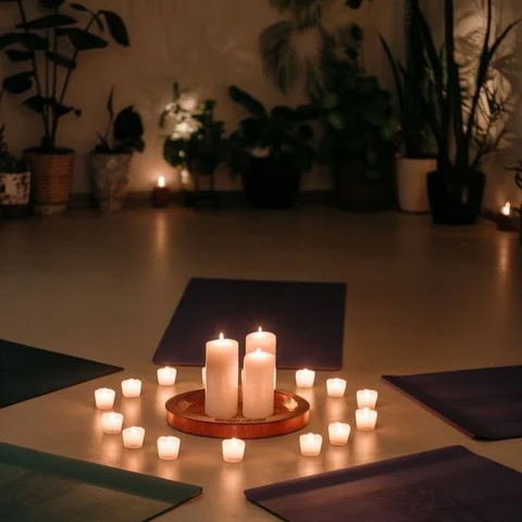 キャンドルの灯りに包まれながら心地よく深呼吸できる夜ヨガ。
