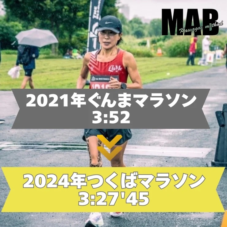当AC代表は、定期的な血液データを練習内容に反映、栄養改善を実施した結果、体重-6kg、体脂肪率19%→9%、筋肉量大幅増。記録は2018年に3時間48分32秒から、2024年は3時間0分13秒まで更新中。