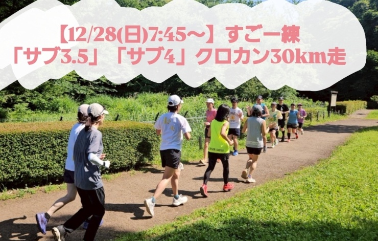 - 【12/28(日)7:45~】すごー練「サブ4」クロカン30km走 :