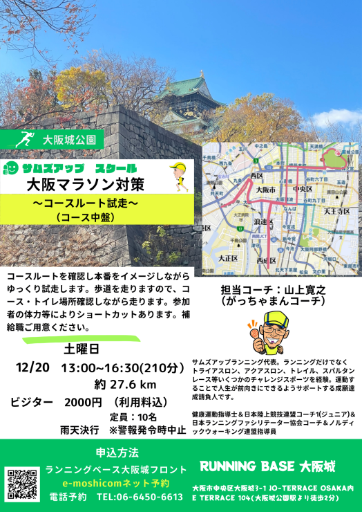 12月20日(土)大阪マラソン試走ラン~コース中盤~ 受付中