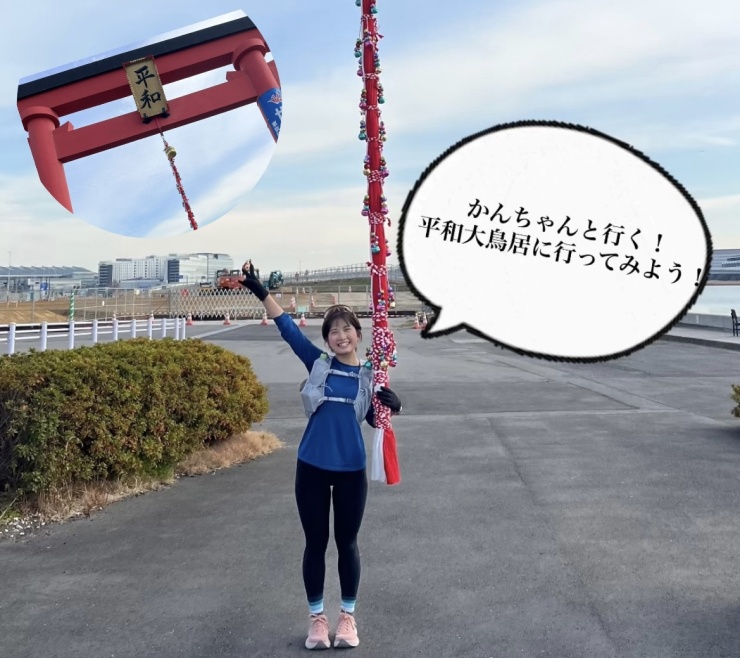 羽田空港近くにある大きな鳥居「平和の大鳥居」を目指してみんなで多摩川沿いを走りましょう!