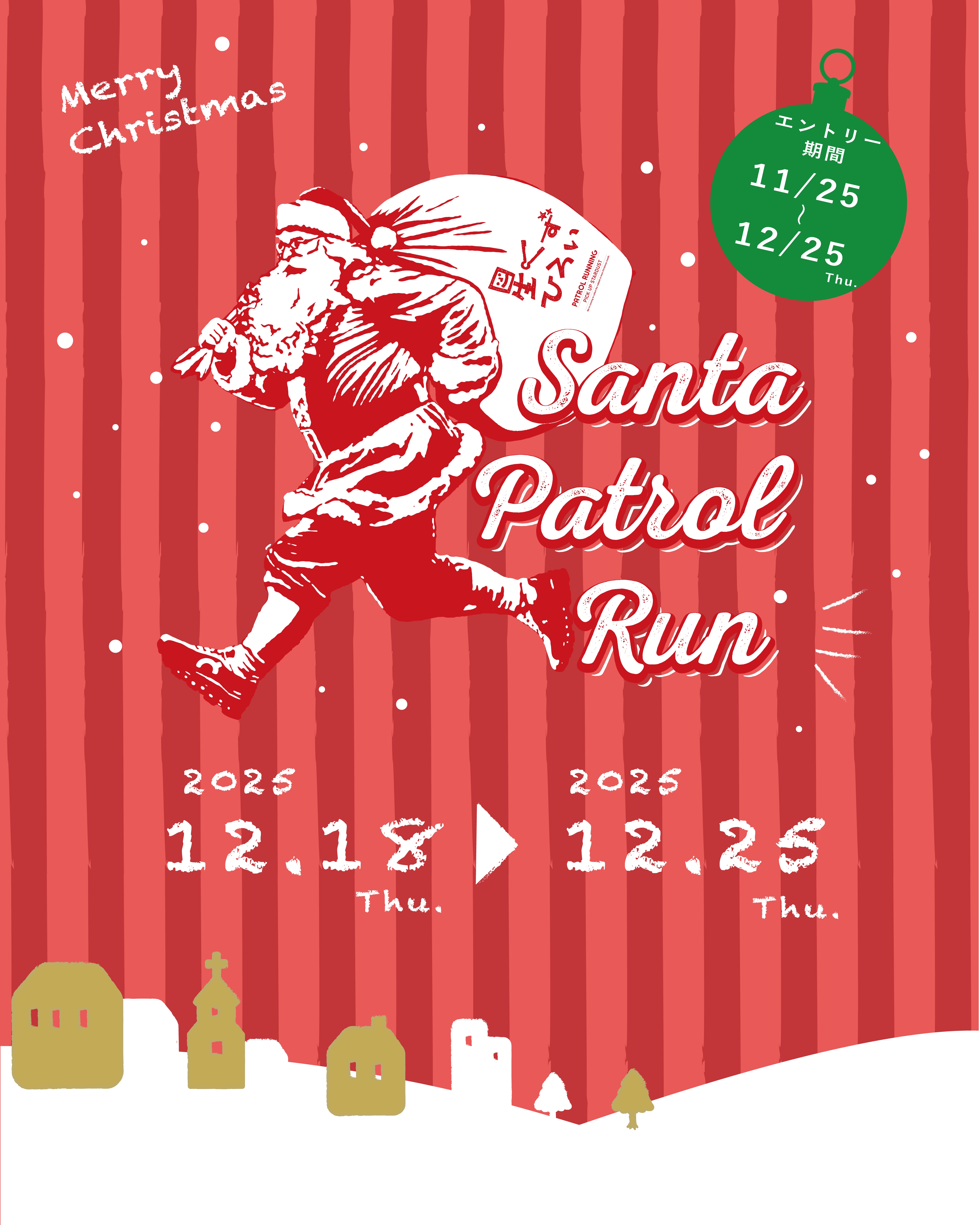 サンタパトロールランは、みんなで楽しく街を走り、笑顔と喜びを広げる取り組みです。クリスマスの雰囲気を味わいながら、ご家族や仲間と一緒にランニング。この瞬間しかできない特別なランニングイベントです。