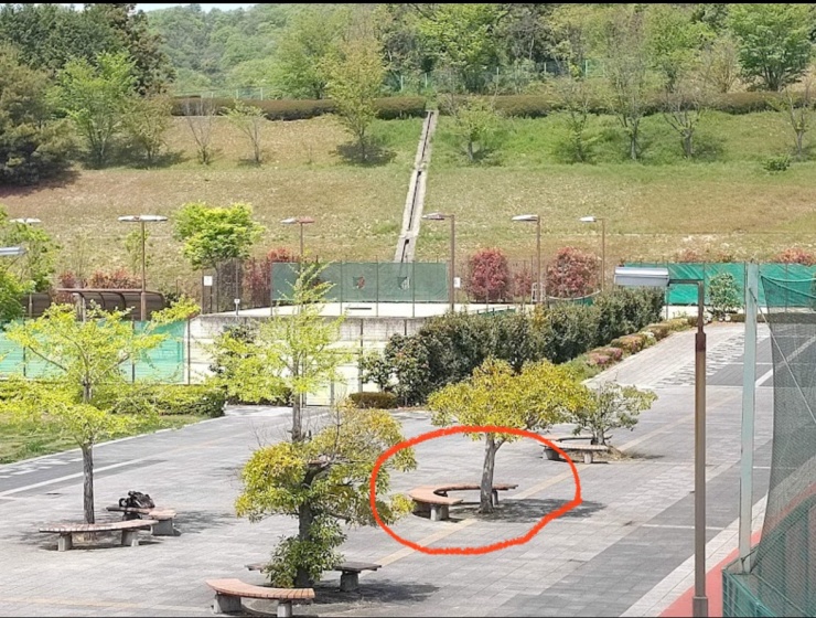 多目的グラウンド横ベンチ集合(上記写真参照)