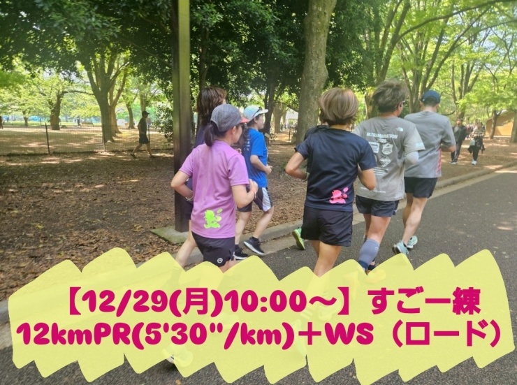 【12/29(月)10:00~】すごー練12kmPR(5'30"/km)+WS(ロード) 受付中