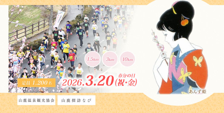 毎年3月の春分の日、あんずの花の咲く頃にあんずの丘をスタート・ゴールとして開催されるマラソン大会です。それぞれのペースでのどかな山鹿市菊鹿町を楽しみながら走りましょう。