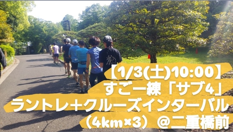 - 【1/3(土)10:00】すごー練「サブ4」ラントレ+クルーズインターバル(4km×3)@二重橋前 :