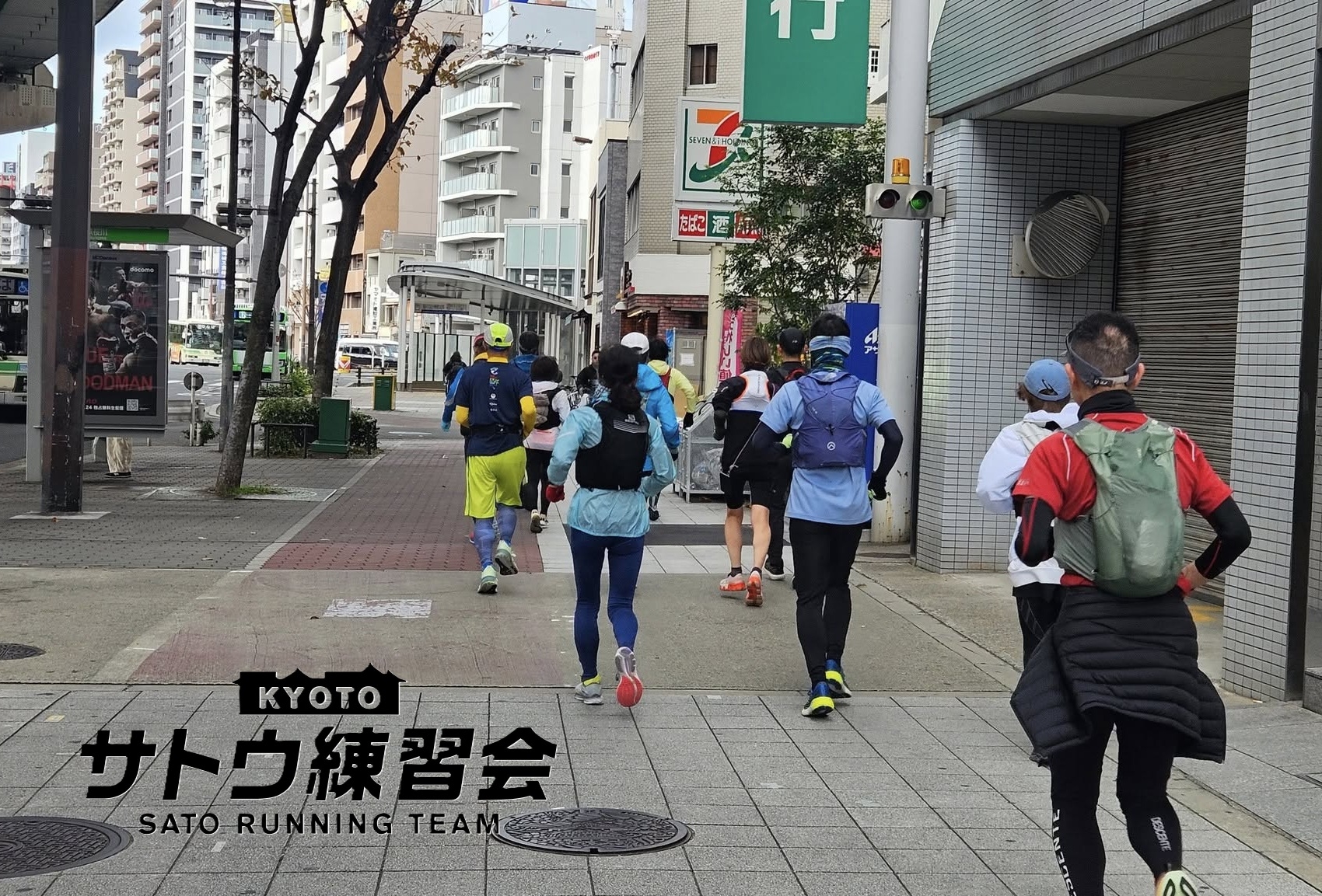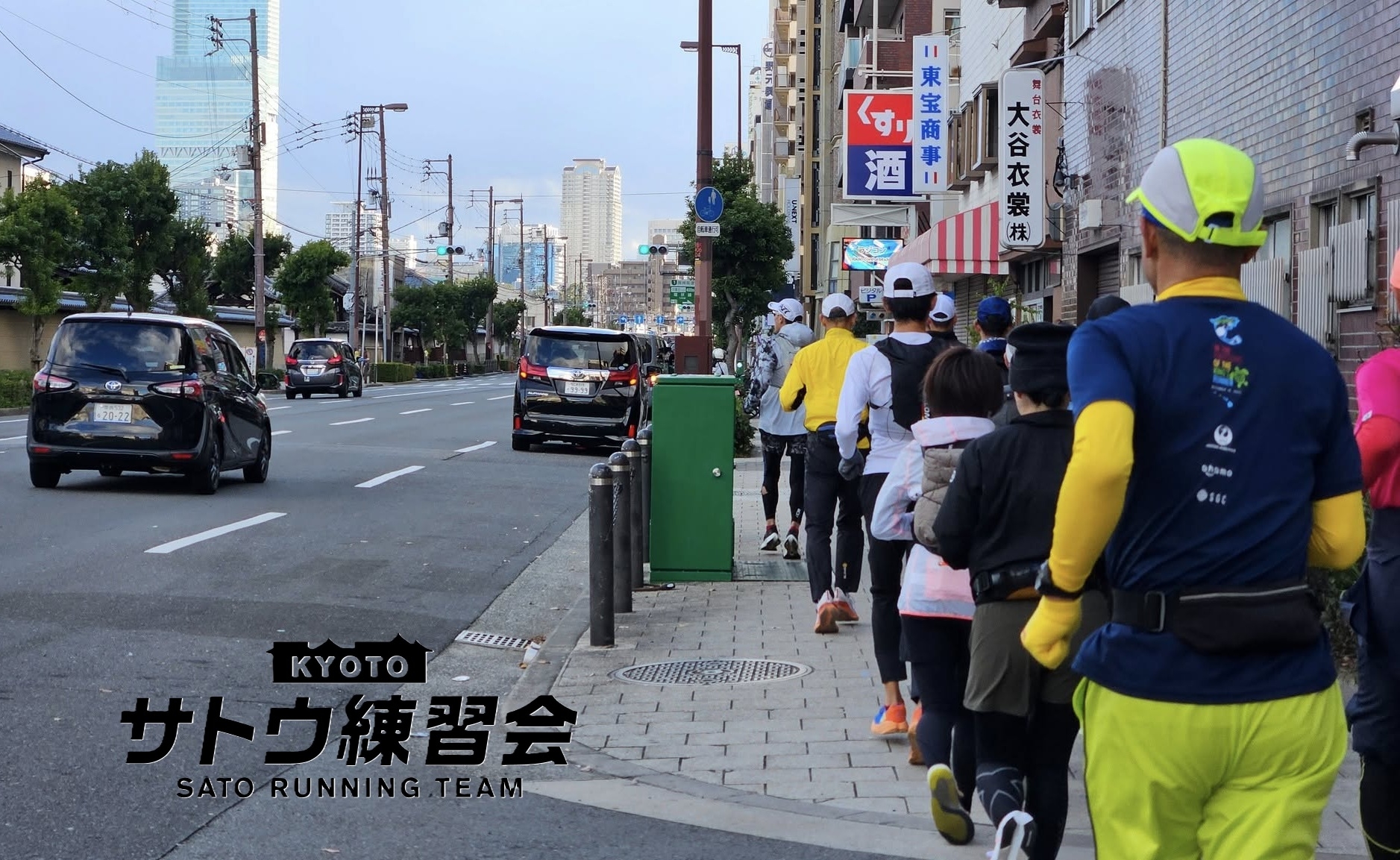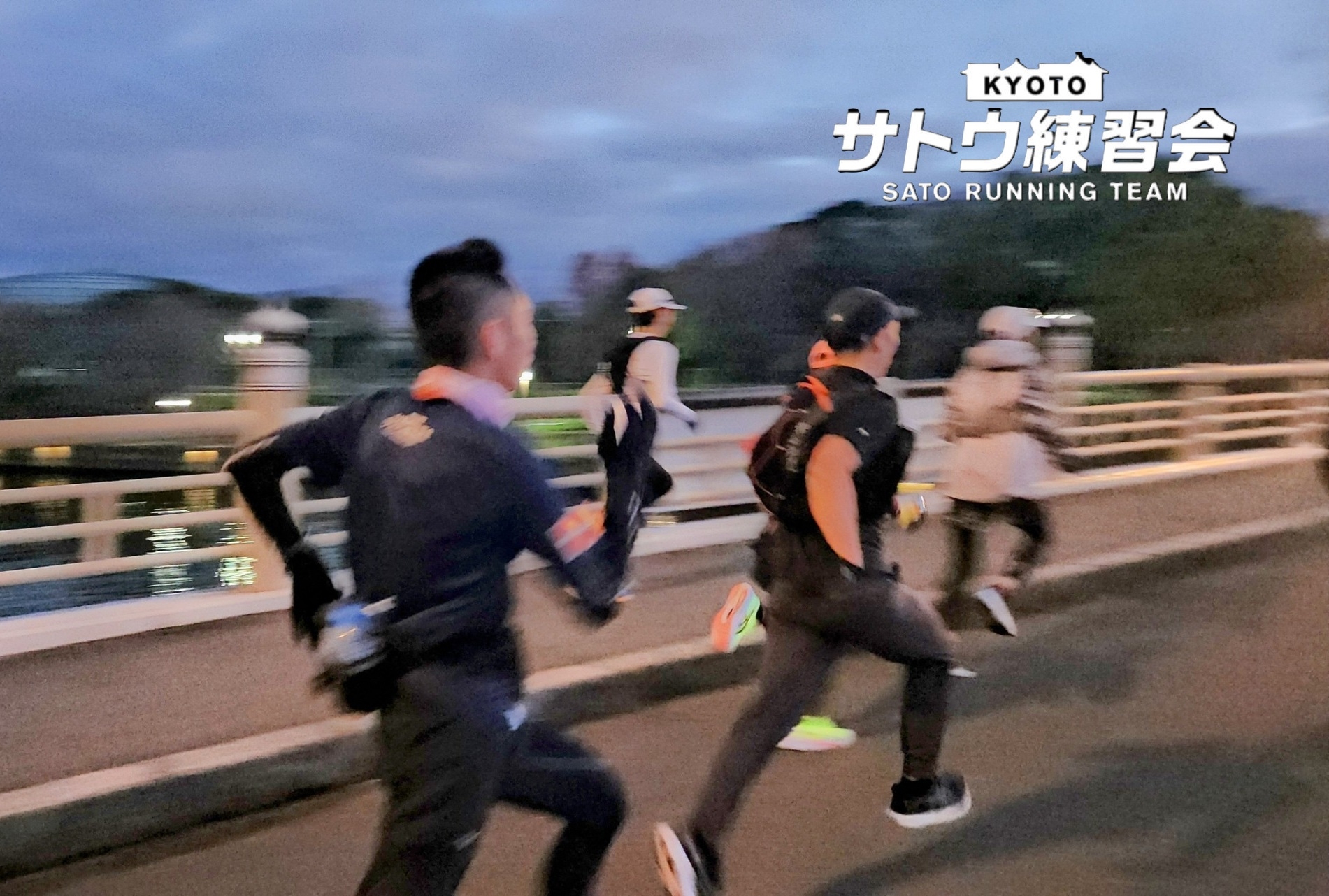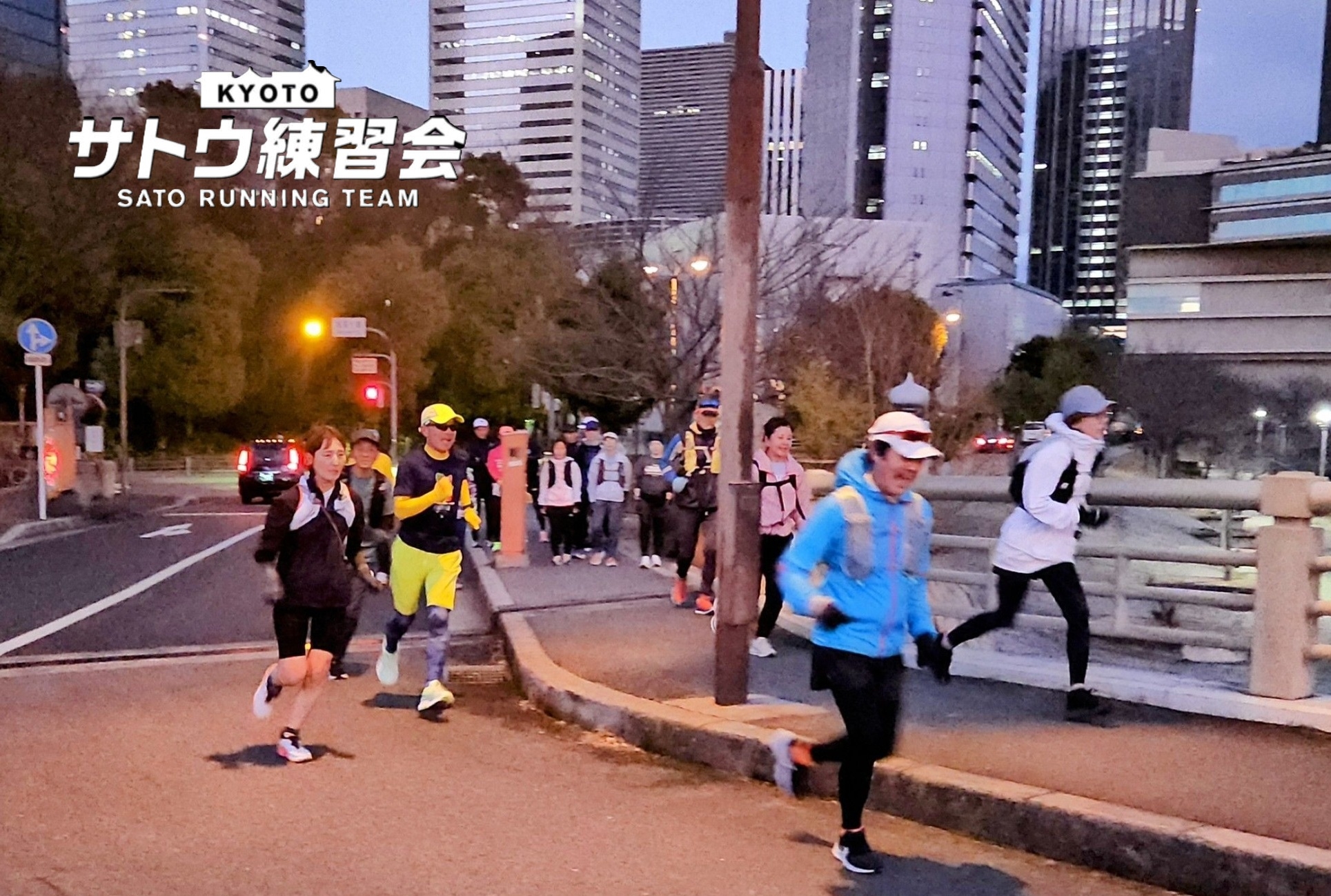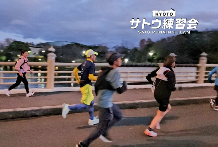 サトウ練習会は、毎週火・木と週末を中心に、京都の二条城や鴨川などでランニング練習を行っています。