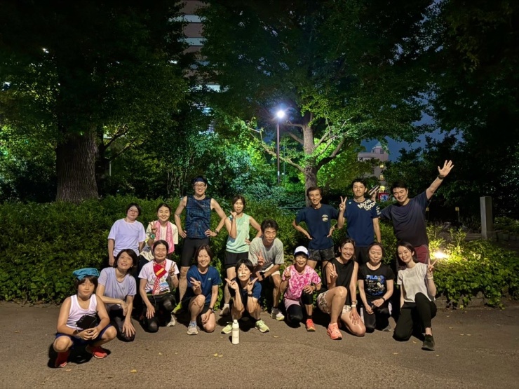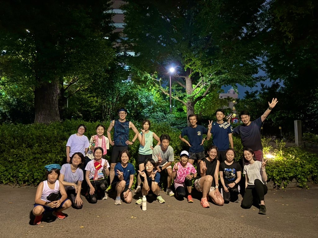 日比谷公園集合→体操→フォーム作りのドリル→ラダートレーニング→日比谷公園の周回1.7Kコース×3周※計5.1K。雨の日は体操→1.7K×4周※計6.8K