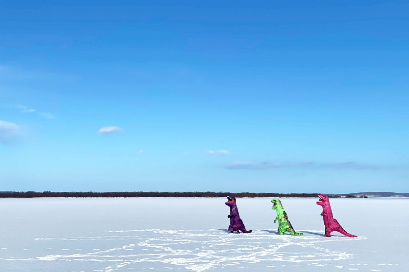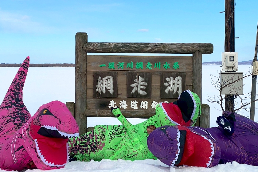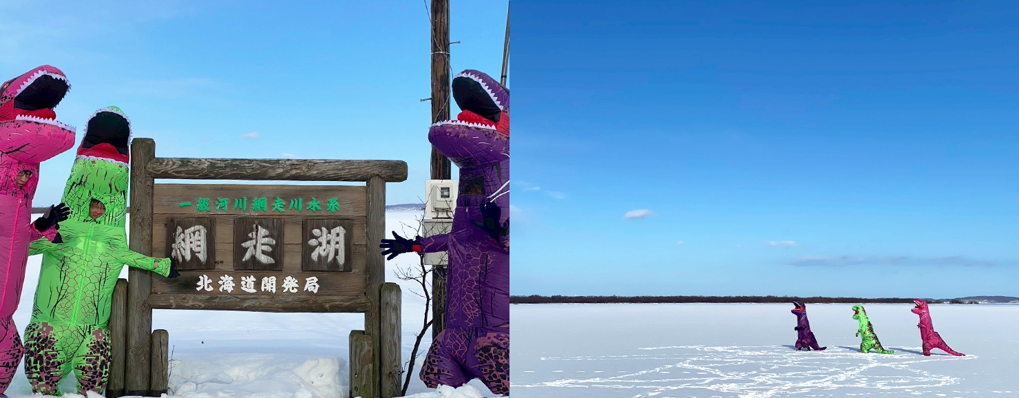 網走湖の氷上をティラノサウルスで駆け抜けろ!