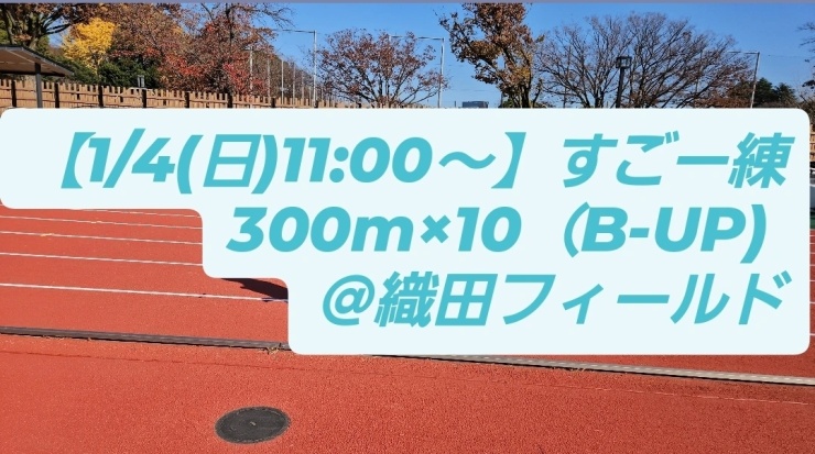 - 【1/4(日)11:00~】すごー練 300m×10(B-UP) @織田フィールド :