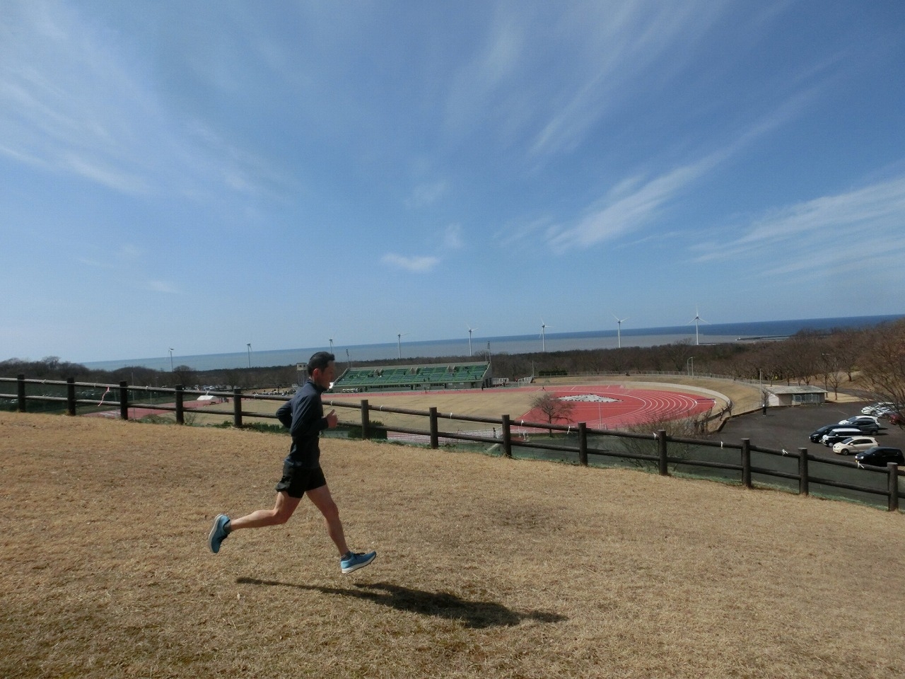 水林陸上競技場をスタート~県道~公園周辺の遊歩道(未舗装)~競技場でゴールとなります。非常にアップダウンの多いコースです。