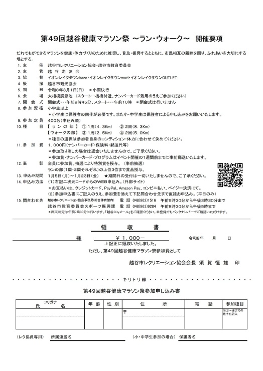 第49回越谷健康マラソン祭 ~ラン・ウォーク~ 受付開始前