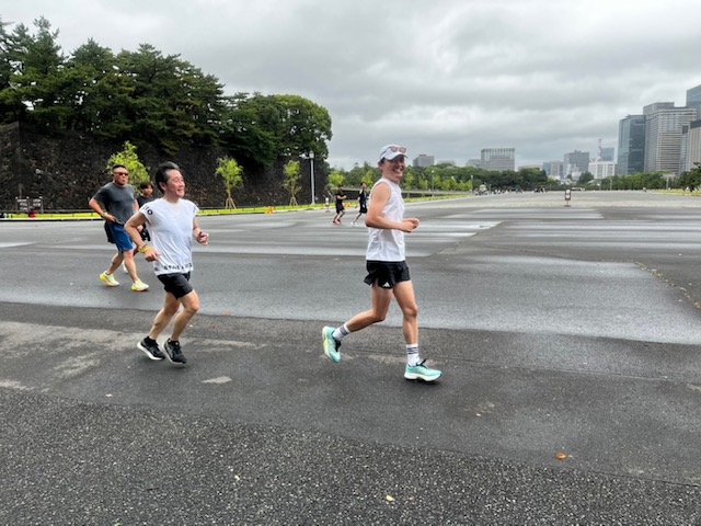 またビギナーやリハビリにピッタリのペース、キロ7分半超から8分弱程度で皇居2周(10キロ)走るグループも設定しています。
