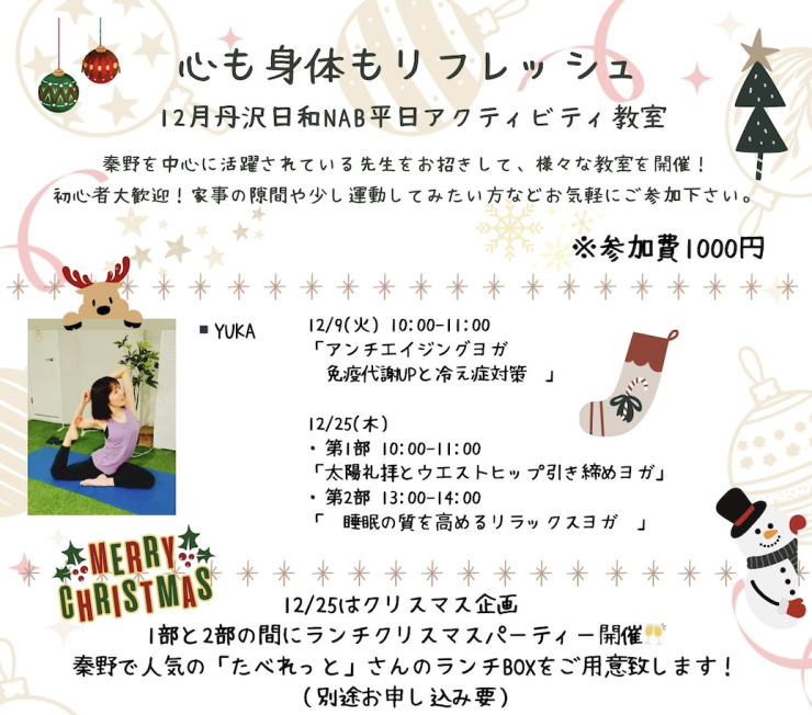 心も身体もリフレッシュ!〜丹沢日和NAB平日アクティビティ教室2025年12月〜 受付中