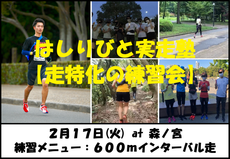 - 学生(高校生以下):2/17【森ノ宮/火曜ナイト】はしりびと実走塾『600mインターバル走』 :