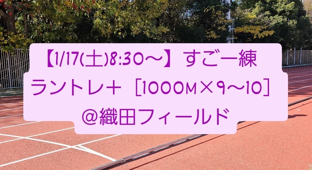 【1/17(土)8:30~】すごー練 ラントレ+[1000M×9~10]@織田フィールド 受付中