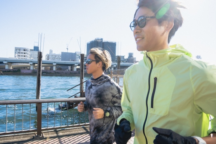 ヨガでコンディションを整えてから、隅田川沿いを1kmあたり7分ペースで120分を目安にジョギング。