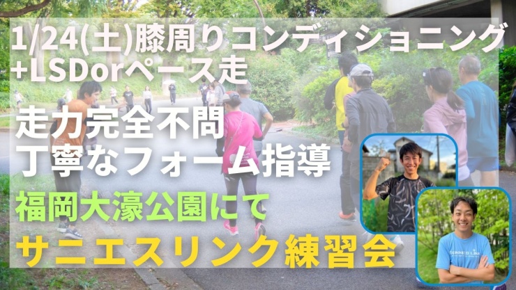 関東ですでに実績のある走力完全不問のランニングクラブ、サニエスリンクです。安心の練習システム、身体の仕組みをうまく使った専門的なストレッチやエクササイズ、丁寧なフォーム指導に定評があります。今まで関東エリアをメインに練習会を運営していましたが、2025年9月より、福岡市大濠公園でも練習会を新規スタートしました!ぜひご参加ください!