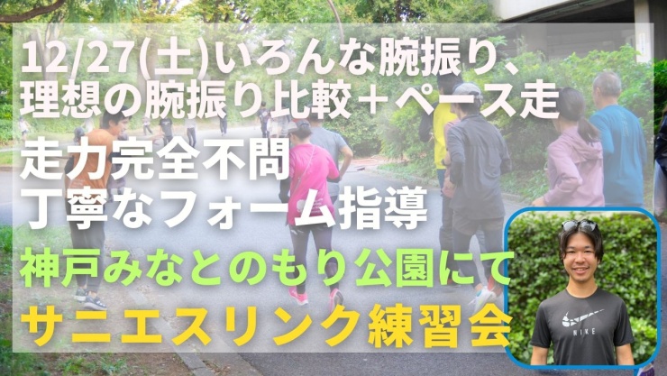 関東ですでに実績のある走力完全不問のランニングクラブ、サニエスリンクです。安心の練習システム、身体の仕組みをうまく使った専門的なストレッチやエクササイズ、丁寧なフォーム指導に定評があります。今まで関東エリアをメインに練習会を運営していましたが、2025年9月より、神戸市みなとのもり公園でも練習会を新規スタートしました!ぜひご参加ください!