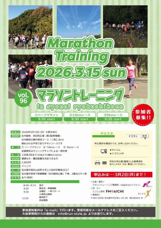 2026/3/15(日)「マラトレ vol.96」庄内緑地で開催!