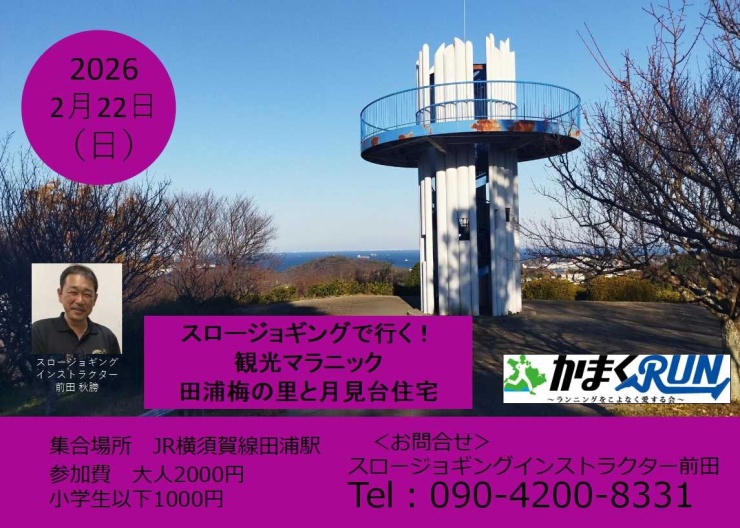 横須賀市田浦を満喫するイベントです。坂の多い町ですが、上り坂はウォーキングで平坦な道はスロージョギングで巡ります。