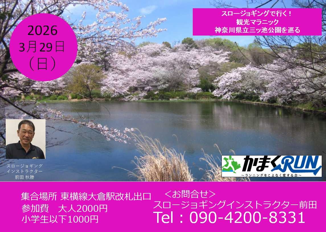 園内には3つの池(上の池、中の池、下の池)がある。これらの池は江戸時代の1787年(天明7年)に、農業用水の溜め池として浚渫・整備された公園。三ッ池公園とその周りを巡るコースです。急な上り坂はウォーキングで平坦な道はスロージョギングで回ります。