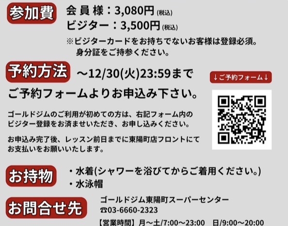 - 新春泳ぎ込み2026 in ゴールドジム東陽町(申し込みはQRコードから) :