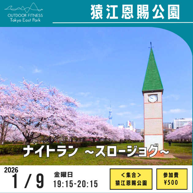 「猿江恩賜公園」ナイトラン~スロージョグ~【TOKYO EAST PARK】 受付中