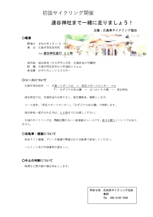 毎年恒例の安芸国総鎮守速谷神社 初詣サイクリングで2026年度の安全を祈願しましょう♪