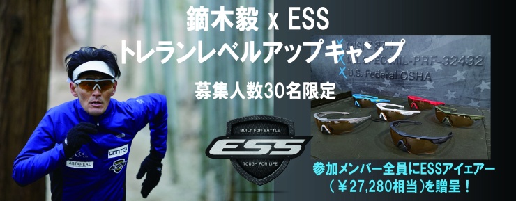 ESSがスポンサードするトレイルランニング界のレジェンド鏑木毅氏を迎え、トレラン初級者から中級者向けのトレラン レベルアップ キャンプを2026年2月18日~4月18日の期間に開催致します。第一回目はZOOMオンラインセミナーにより開催し、第二回目から第四回目までは鏑木毅氏が愛用するESSアイウェアを装着し、実践レクチャーを受けるイベントとなります。