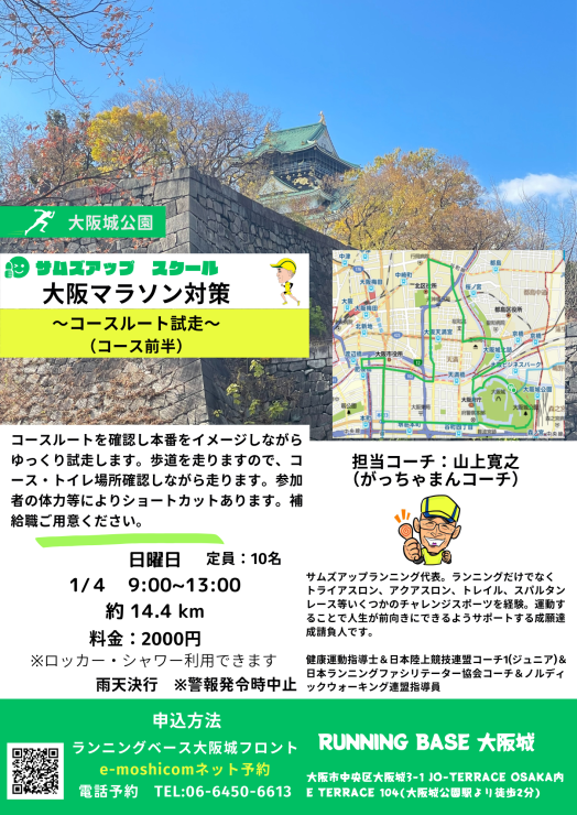 1月4日(日)大阪マラソン試走ラン~コース前半~ 受付中
