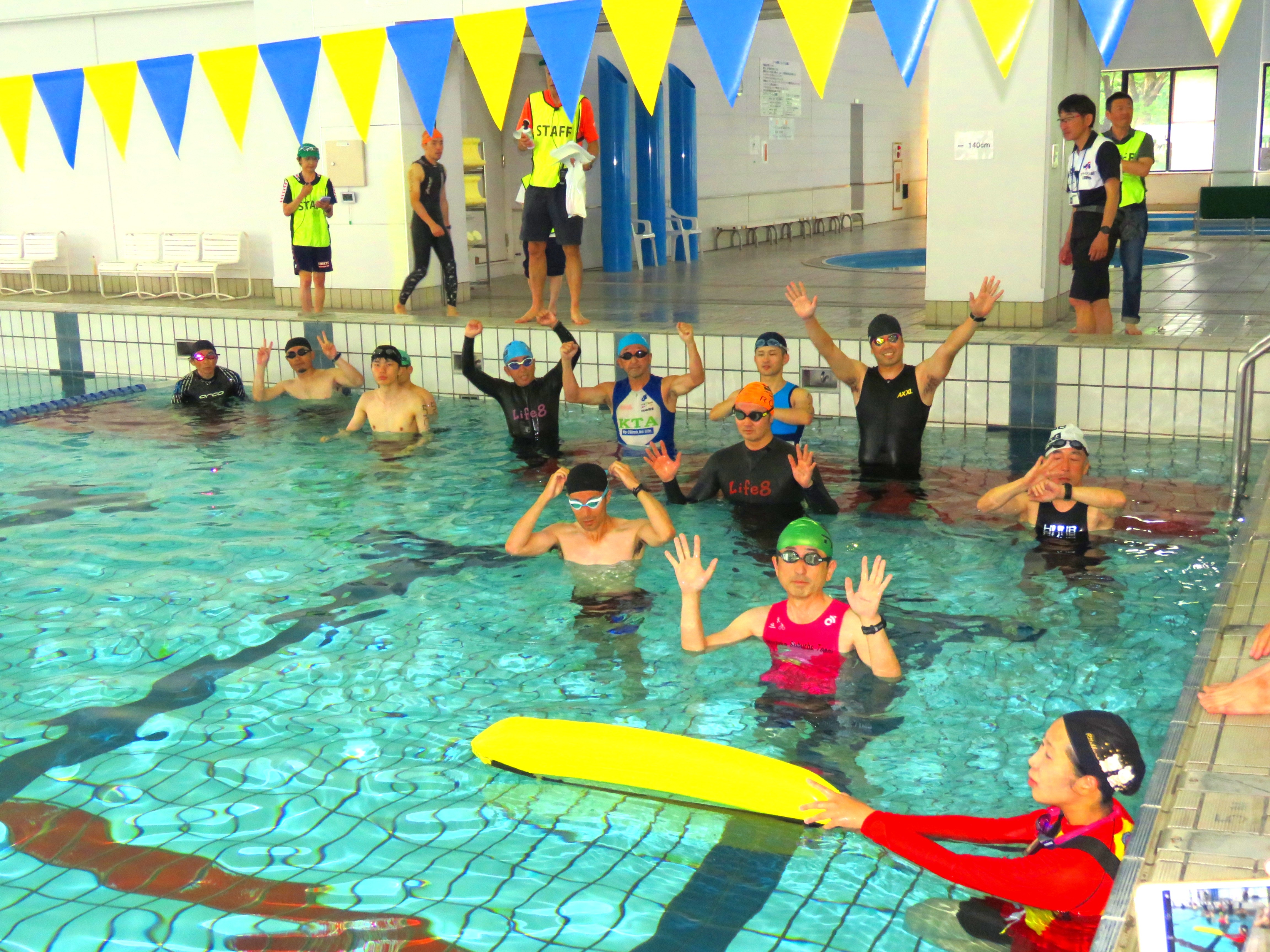 屋内50mプールのホットスイムが会場。スタンダード部門65人+スプリント45人の少数限定で、岩手山のふもとの、水と空気が美味しい「しずくいし」が舞台のアットホームなトライアスロン大会。