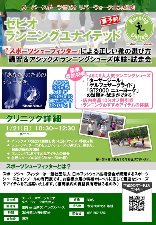 ランニングユナイテッド北九州 スポーツシューフィッターによる無料ランニングクリニック 受付終了