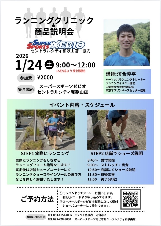 スーパースポーツゼビオセントラルシティ和歌山店協力のもと、ランニングクリニック&商品説明会を開催します!
