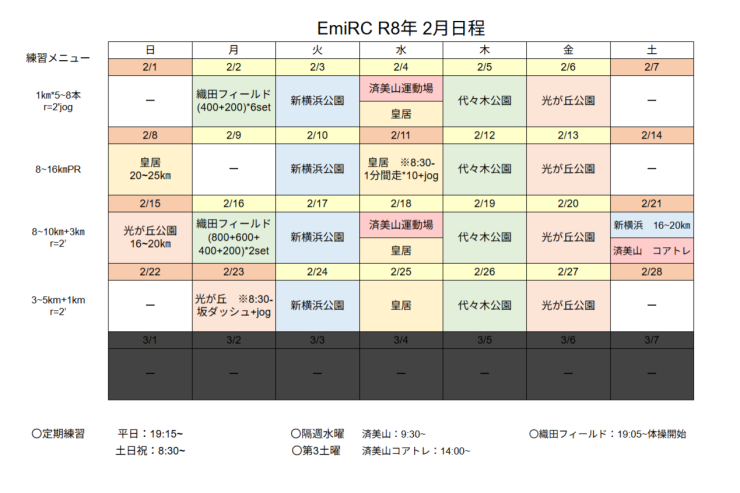 Emi Running Club 「Emi練」 @済美山運動場 1月~6月 受付中