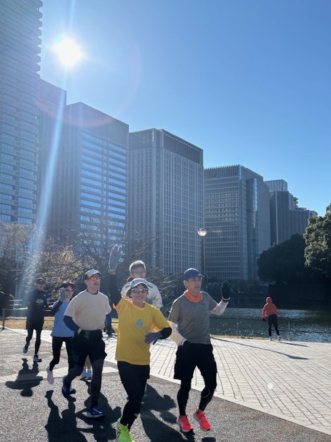 またビギナーやリハビリにピッタリのペース、キロ7分半超から8分弱程度で皇居2周(10キロ)走るグループも設定しています。