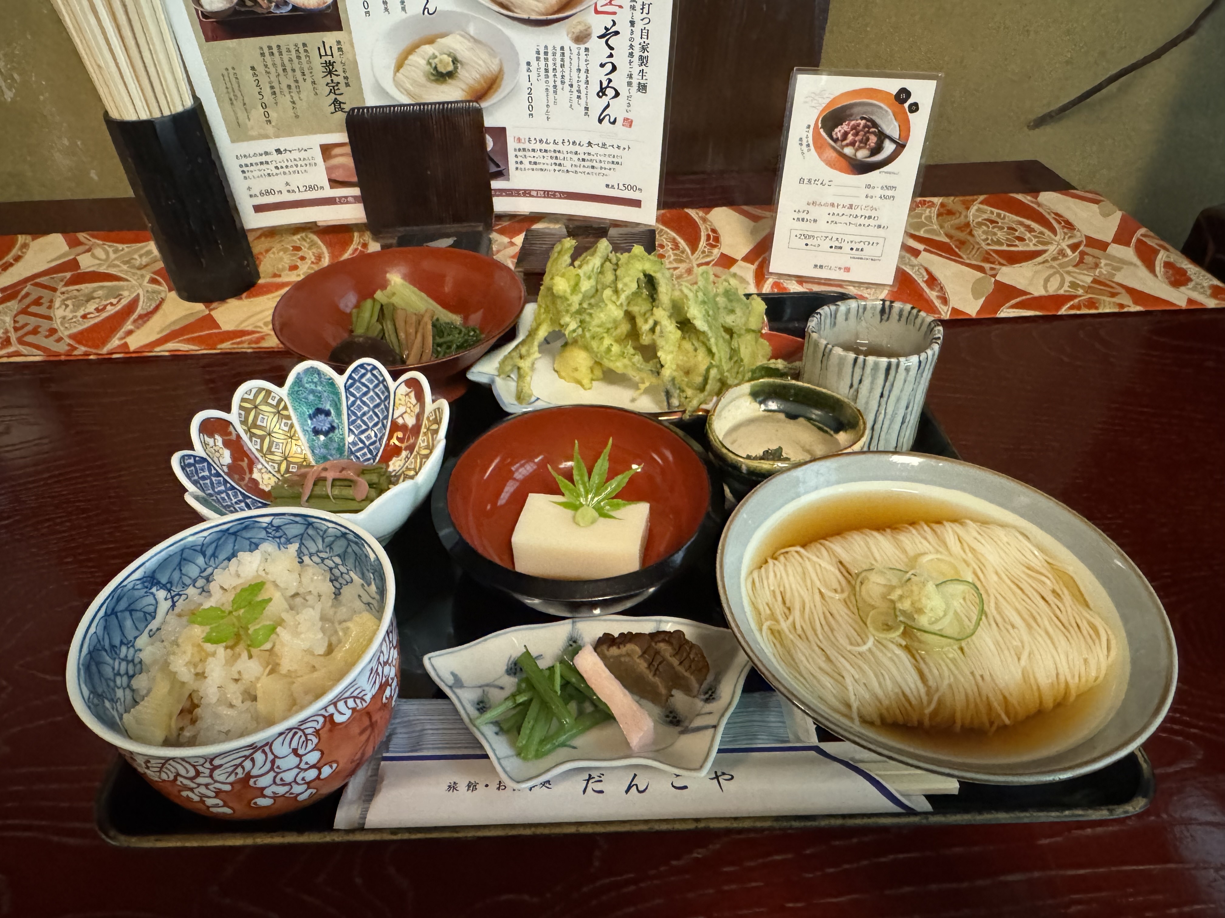 「だんごや」では、地元名物の素麺や山菜を中心とした定食をご用意いただく予定です。アレルギー等がある場合は、事前にご連絡ください。