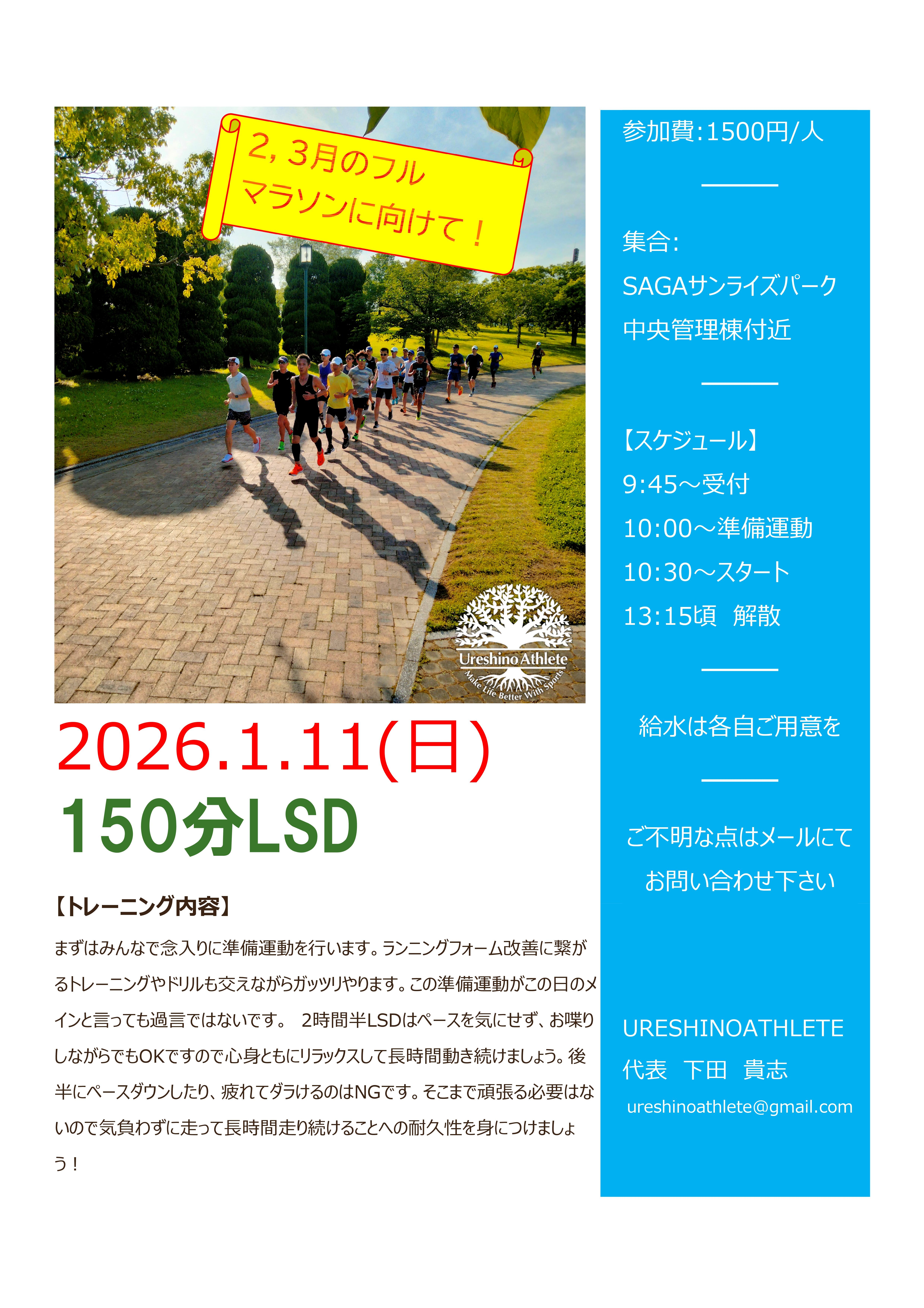 【2,3月のフルマラソンに向けて!】みんなで150分LSD 受付終了