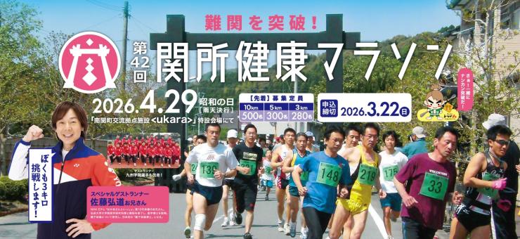 古代より関所として栄えた「南関町」。ここを舞台に見どころ満載、の関所健康マラソンを開催します。