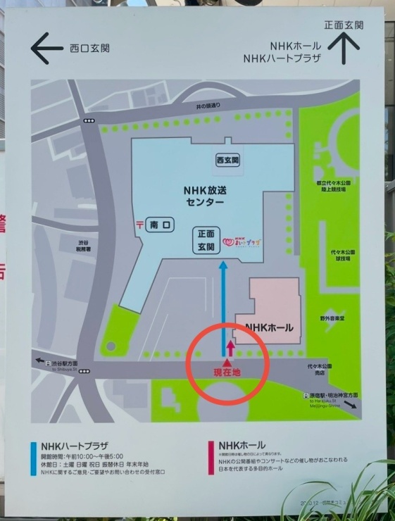 NHKホール入口・掲示板付近に集合しましょう